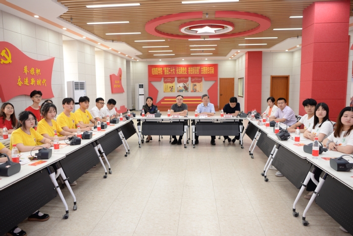 青春献礼二十大,强国有我新征程。5月30日下午,我校在思政课虚拟仿真实践教学中心举办“喜迎二十大  永远跟党走  奋进新征程”主题团日活动。团省委副书记、省青联主席李波,校党委副书记吴金月、副院长郑兰荣,团省委学校部部长邹永生、副部长张国栋,团市委兼职副书记钱彬彬出席活动,与20余名青年学子共赴青春之约。本次主题团日活动以“学党史 知团史 铭校史”为主线,结合医学院校历史和专业特色,围绕“守初心”“悟方向”“担使命”等关键词,打造了一场形式多样、内涵丰富的青春思政课。