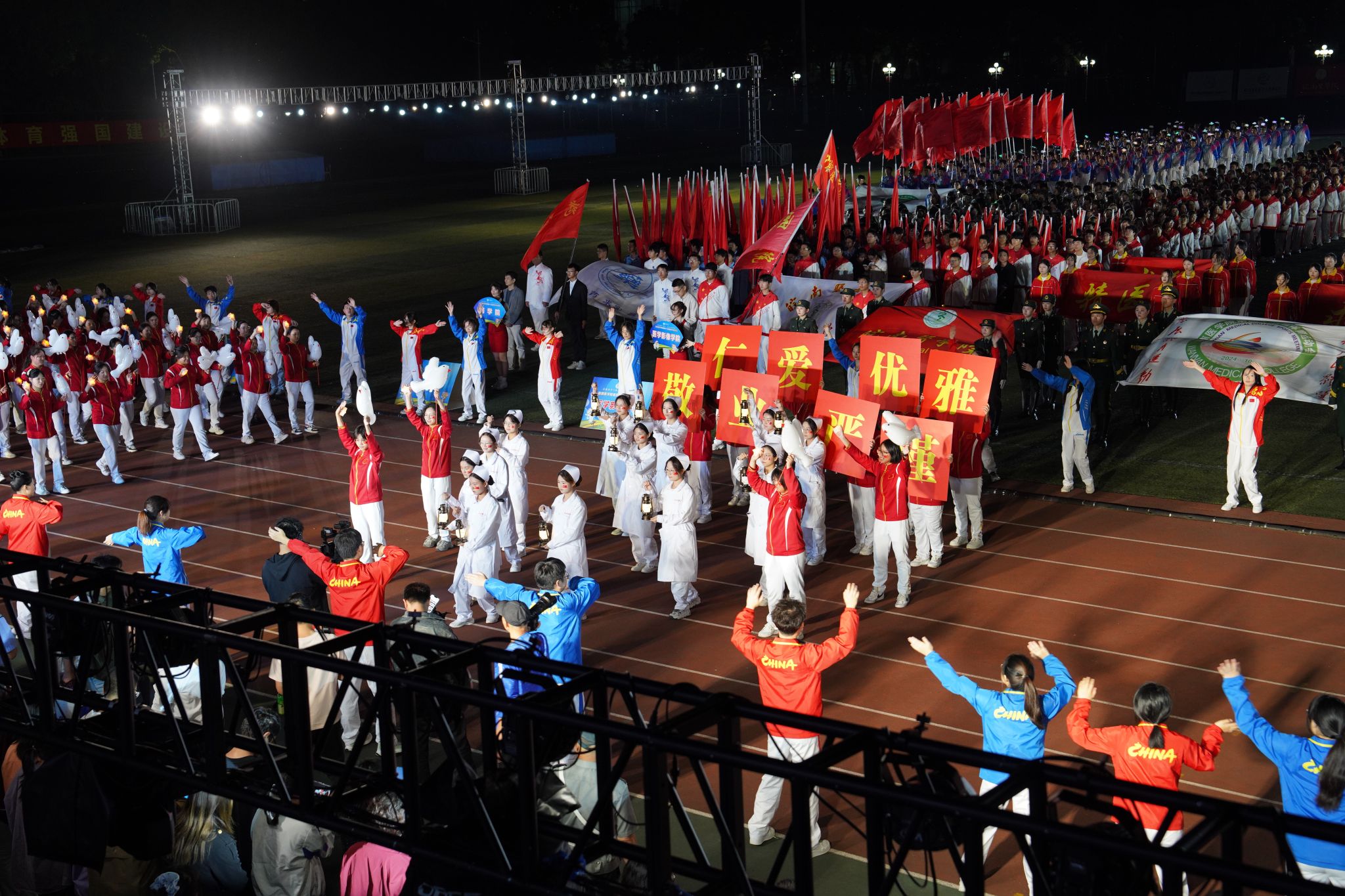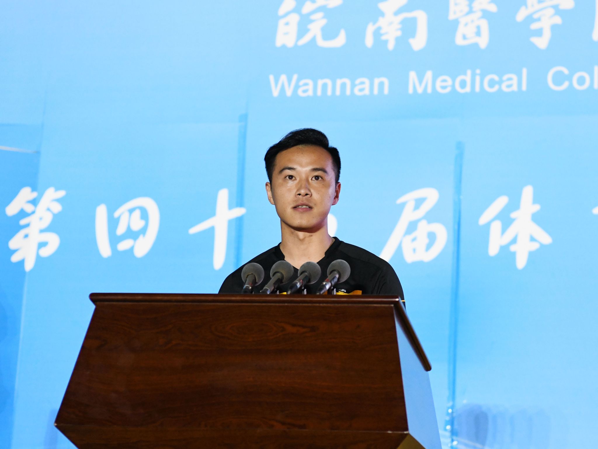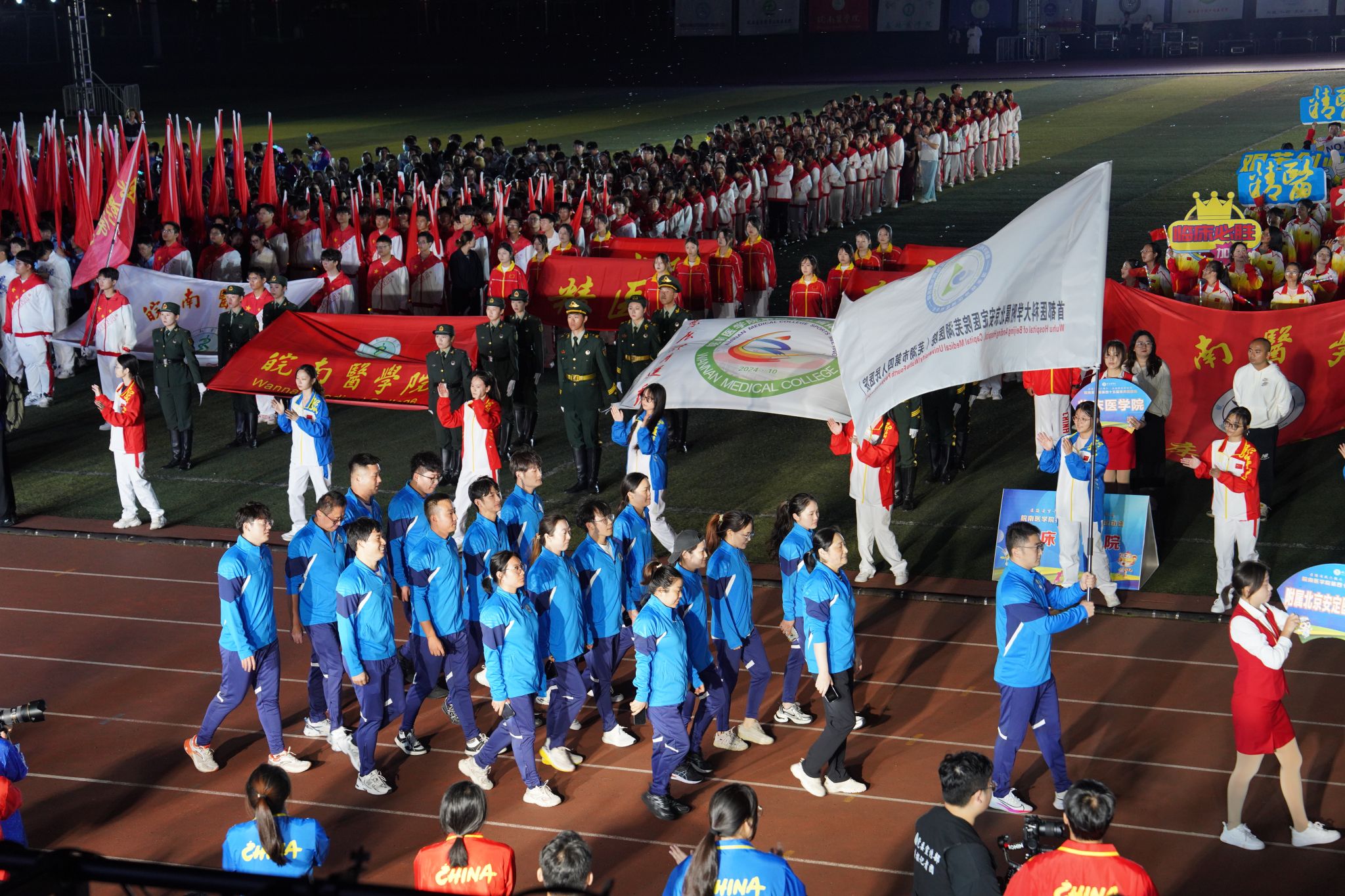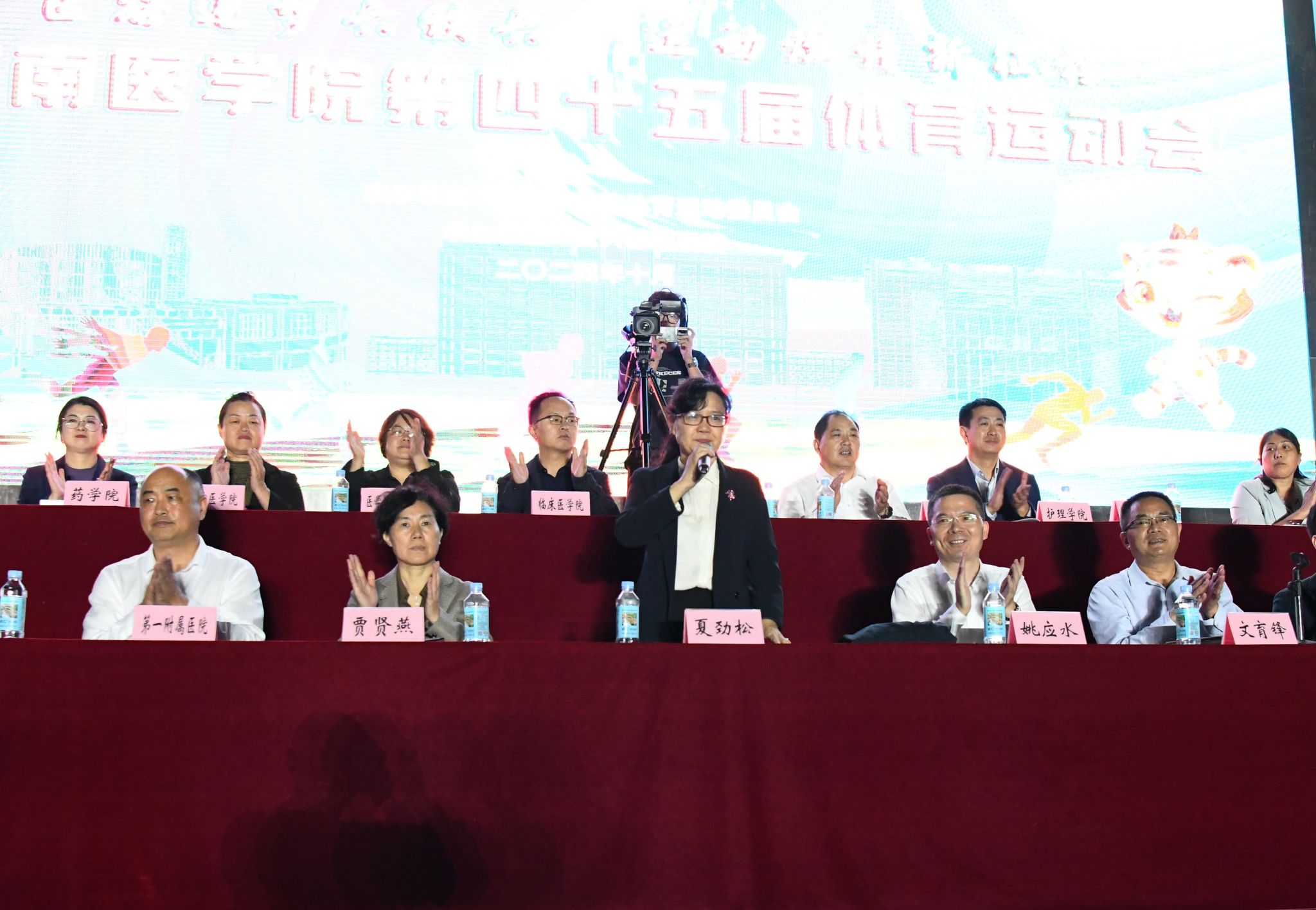 党委副书记、院长姚应水致开幕词。他首先代表学校为筹备运动会的师生医护员工表示衷心的感谢,向全体运动员、裁判员和工作人员致以诚挚的问候。姚应水指出,国运兴则体育兴、国家强则体育强。学校一直重视体育工作,持续深化体育课程教学俱乐部制改革,体育工作蓬勃发展,竞技体育成绩优异。希望全体师生坚持顽强拼搏,争竞技的冠军;尊重比赛规则,争道德的冠军;弘扬体育精神,争风格的冠军,将从体育中获得的顽强拼搏精神、矢志奋斗精神、坚持不懈精神,践行在爱国之志、报国之行的实践中,在拥抱学习、拥抱生活、拥抱世界过程中实现身心全面发展、个人成长成才。