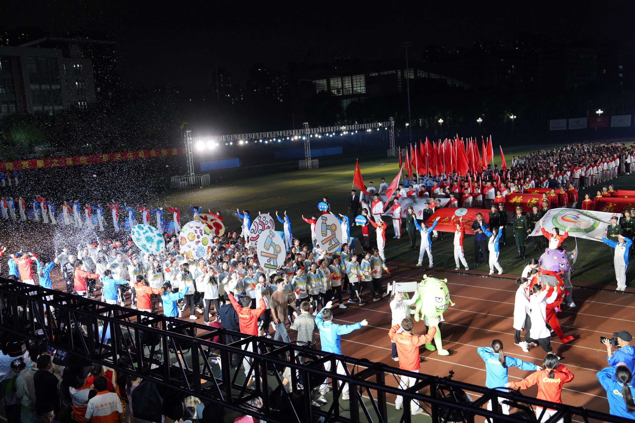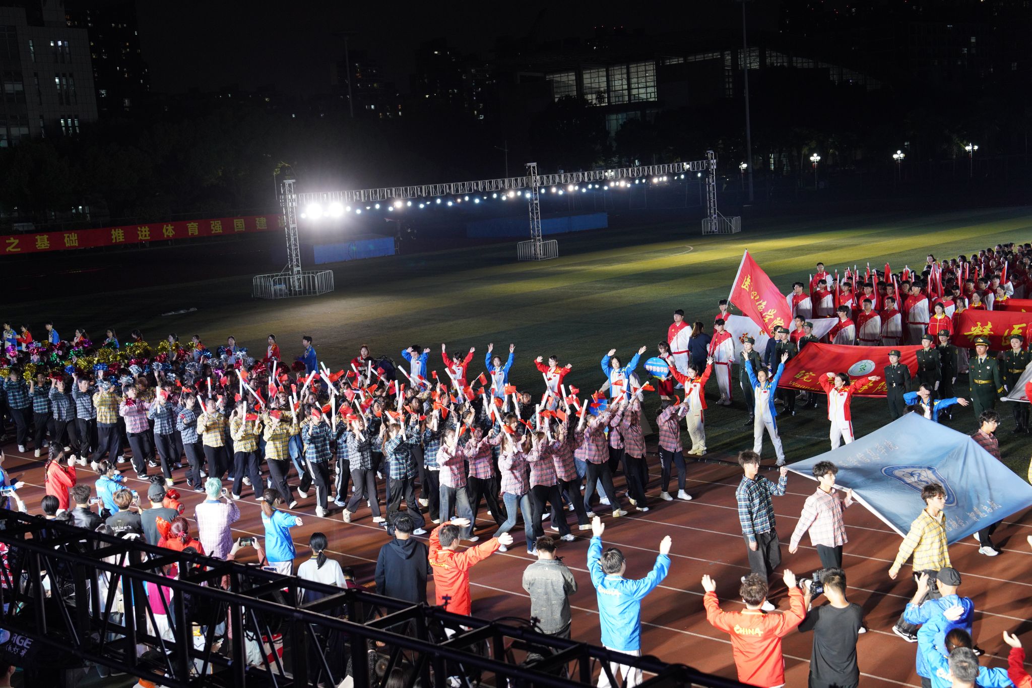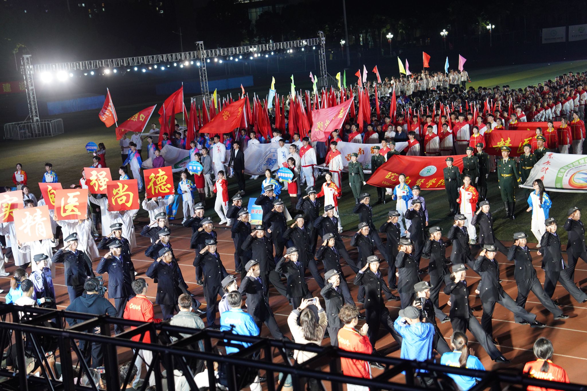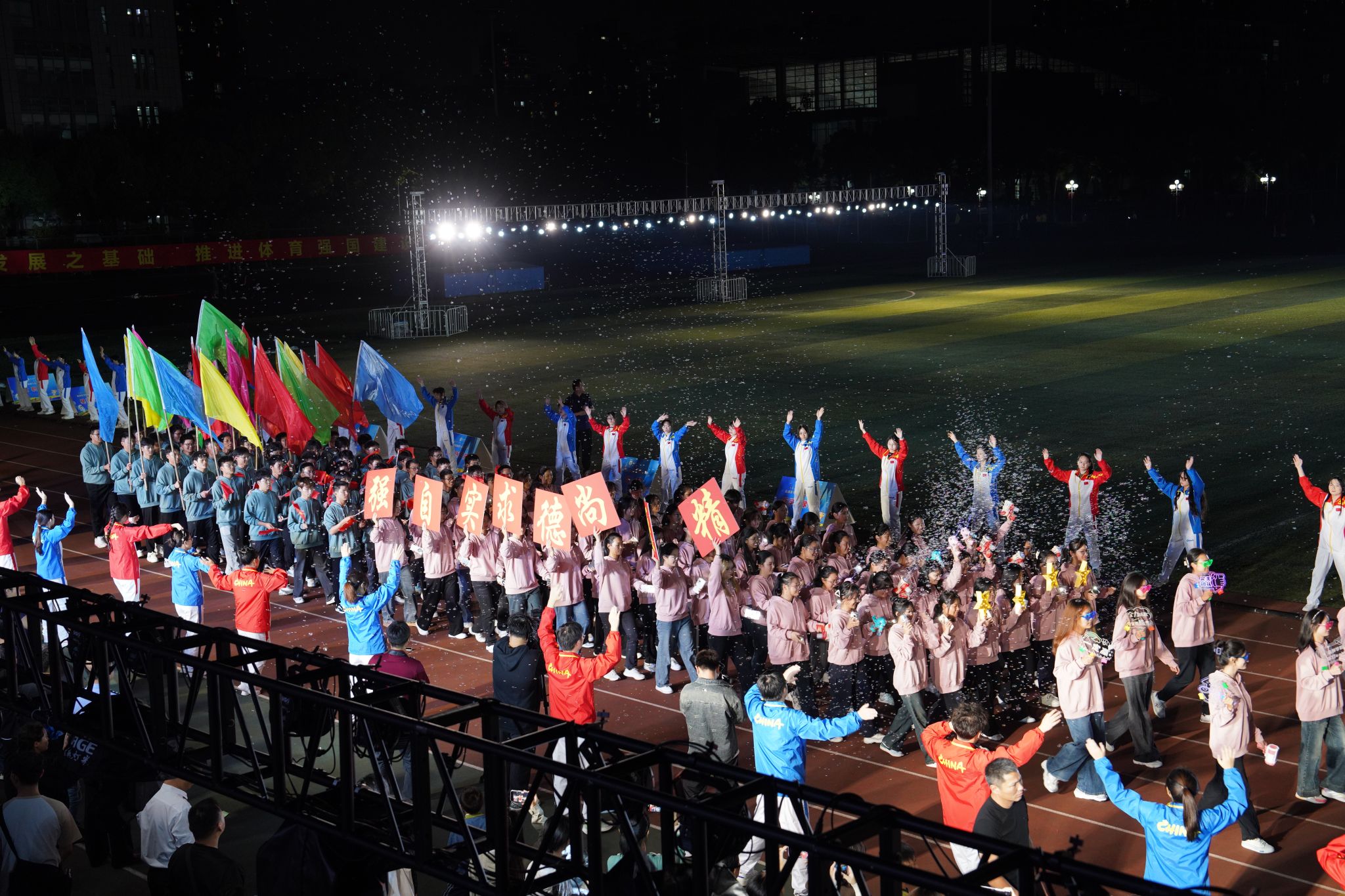 开幕式上,灯光璀璨、彩旗飘飘、活力飞扬、热闹非凡,到处洋溢着青春与欢快的气息。伴随着激昂的运动员进行曲,由校旗会旗队、校训旗队、各运动员代表队和裁判员代表队组成的方阵依次入场。他们精神抖擞、意气风发、步伐矫健、口号嘹亮,彰显了皖医人自强不息、顽强拼搏的精神风貌,赢得全场观众的热烈掌声和欢呼声。