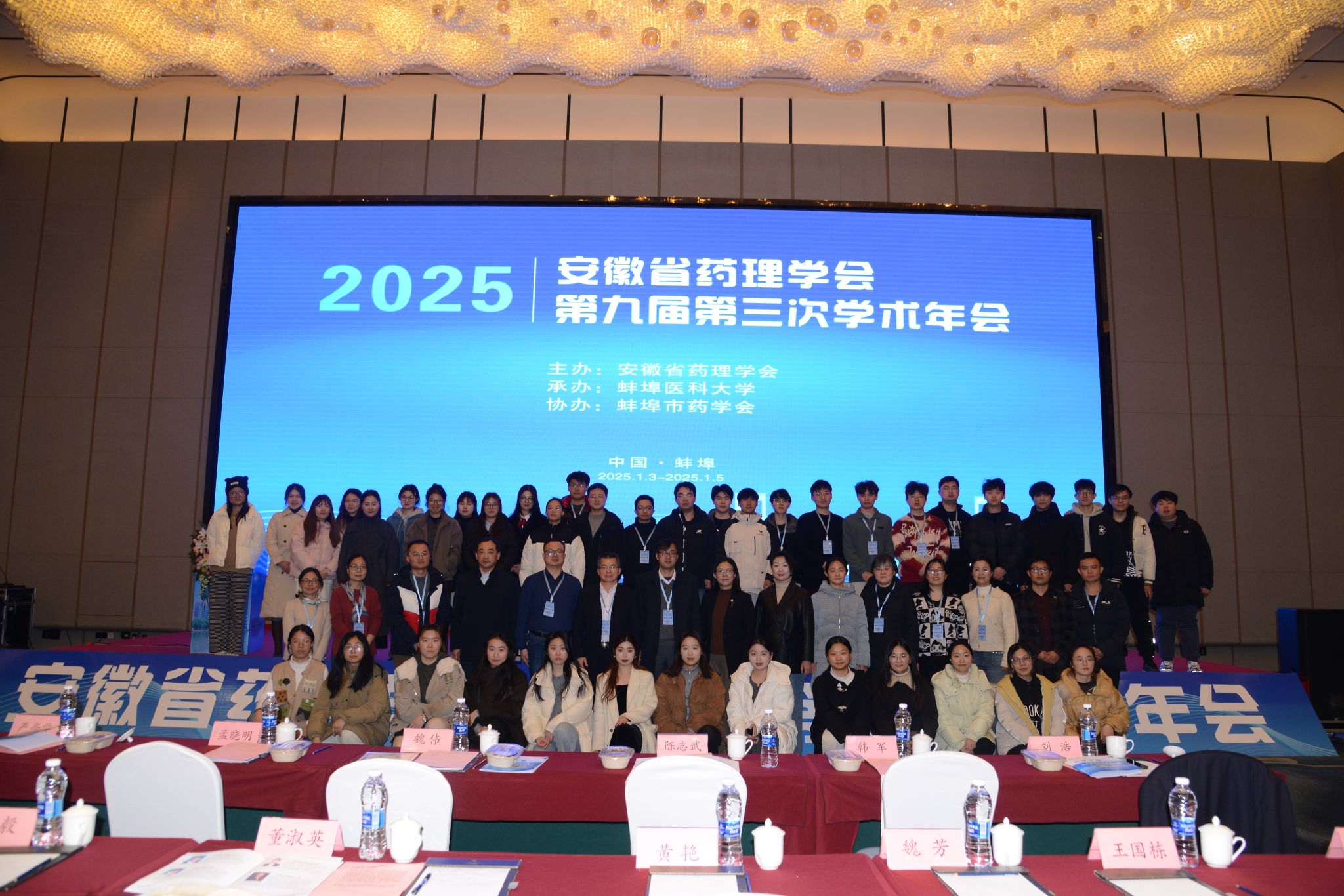 1月3日至5日,由安徽省药理学会主办,蚌埠医科大学承办、蚌埠市药学会协办的安徽省药理学会第九届第三次学术年会在蚌埠召开。我校药理学团队师生共70余人参加会议。